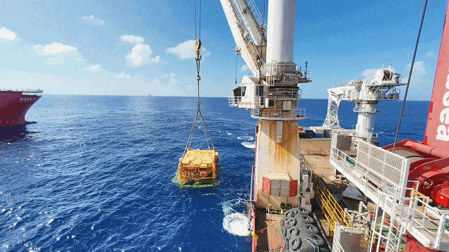 For this installation, the project team from COOEC repeatedly optimized the construction plan, pioneering a mode featuring "underwater production system + shallow water jacket treatment platform + deep-water semi-submersible platform remote control system". They succeeded in overcoming several technical challenges, including wire rope twisting during ultra-deepwater engineering operations, and also registered a new record for the depth of dual-rope lifting operations in China's offshore engineering at 960 meters.